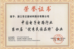 華正新材憑著卓越的創新能力得到了社會和各機構的認可。先后通過了ISO9001、ISO/TS16949質量管理體系和ISO14001環境管理體系認證,GBT 29490企業知識產權管理體系。主導研發生產的產品均已通過中國CQC、美國UL、日本JET和SGS認證。先后榮獲中國馳名商標、國家高新技術企業、中國印制電路行業優秀民族品牌、浙江省企業技術中心、浙江省企業研發中心、浙江省5G產業聯盟(唯一材料成員單位) ,浙江省企業研究院,浙江省高新技術企業研究開發中心,工信部國家級綠色工廠,浙江省專利示范企業, 浙江省級博士后工作站,中國馳名商標,中國電子電路行業優秀民族品牌企業等稱號,并于2020年獲得“國家企業技術中心”榮譽稱號。